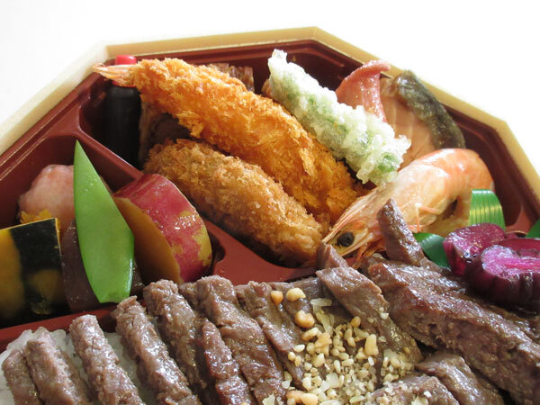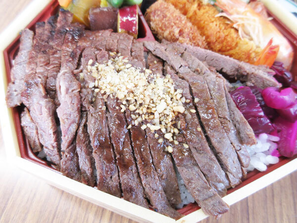 牛まぶしがメインなのですが、季節によって入っているおかずが異なります。秋のお弁当の中身はこんな感じでしたよ~。