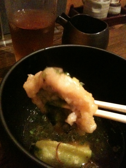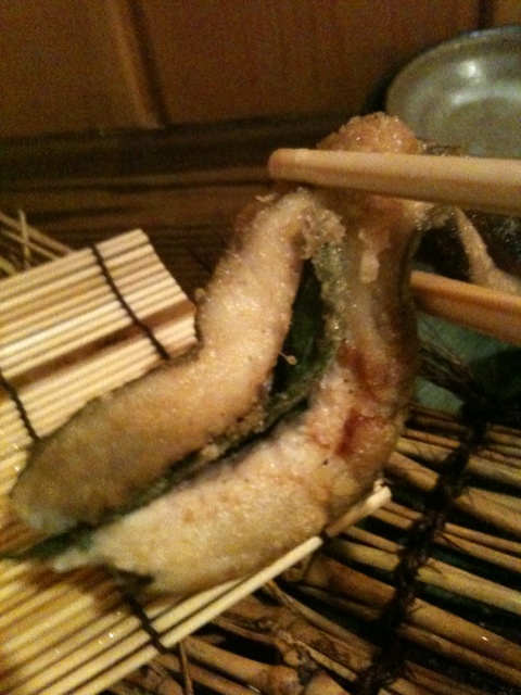 しその葉挟み焼です。香り良し。紫蘇が匂いを消していますね。
