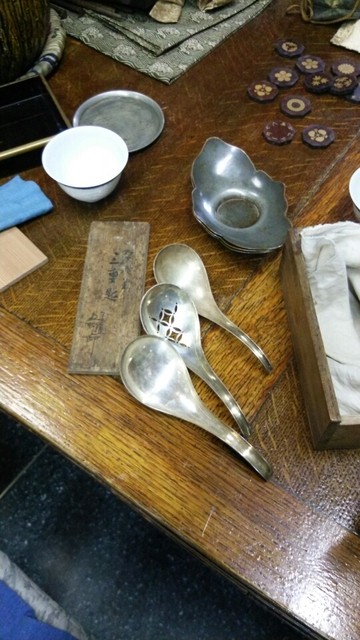 (写真にお茶会に使用されていた。茶道具やお遊び道具などを写真に納めましたのでご参照ください。)