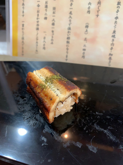 鰻は蒲焼きを軽くバーナーで炙って提供。