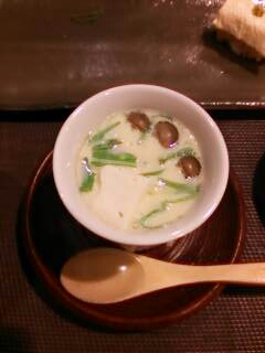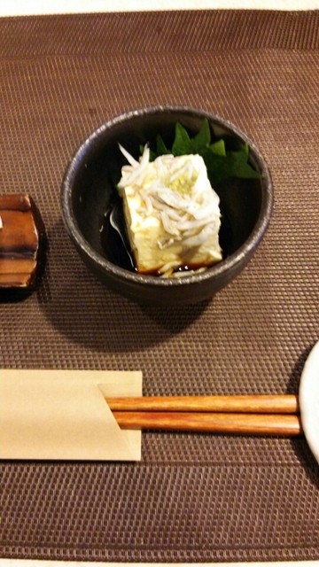 寄せ豆腐(とびここんにゃく、蓴菜和え)