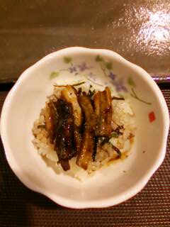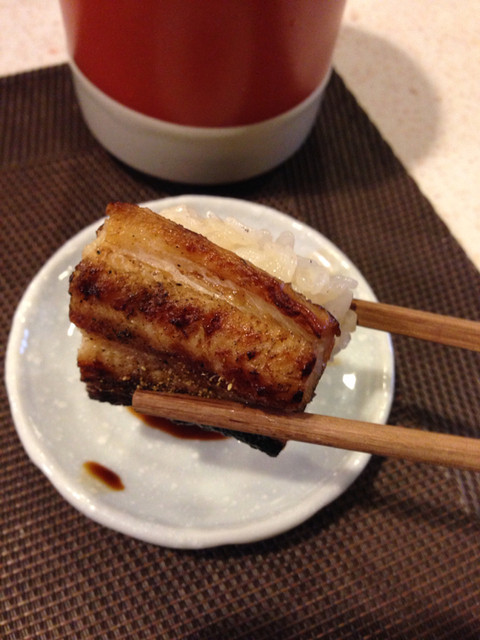 甘ダレは、赤酢のすし飯に絡めていただきました。