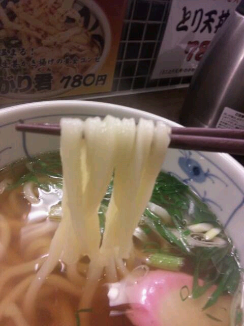 うどんは、見た目は、やや細めで大阪うどんですが、製法は、讃岐うどんなのでこしがあり、つるつるの麺です。