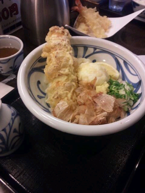 2013.01.30 鶏天ぶっかけ冷や大盛!海老天は連れからゲット!
