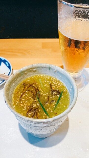 〆で飲んだもずく入りの鶏スープが絶品でした。