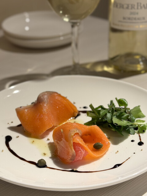 「スモークサーモンとグレープフルーツのカルパッチョ」