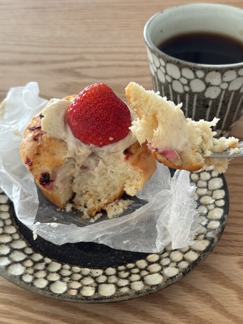 大きな苺が乗った、しっとり系のマフィン。