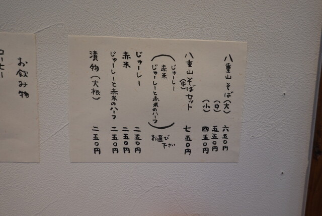 メニューは、八重山そば 小¥400、中¥500、大¥600。