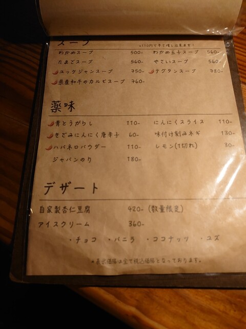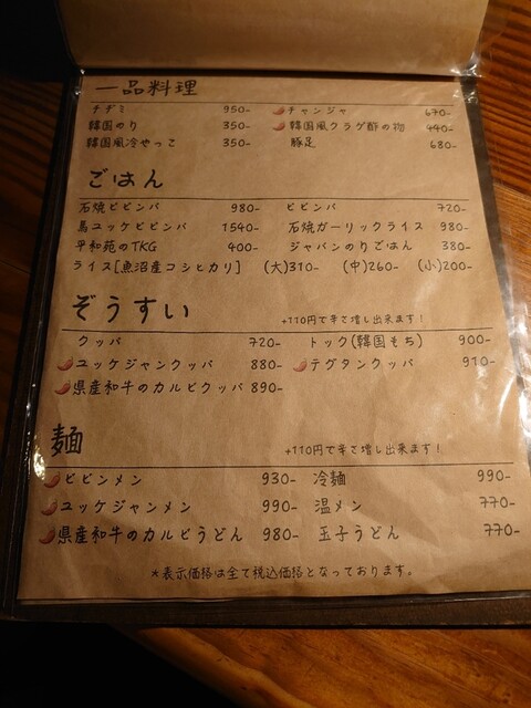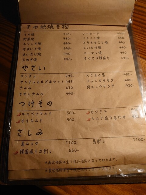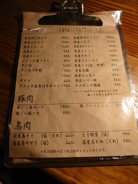 メニューを見まして、基本のカルビやロースは千円以下ですね。