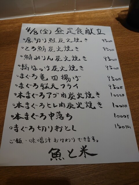 4月からランチを始められた 魚河岸脳天屋 魚と米 さんへ、また来てしまいました。
