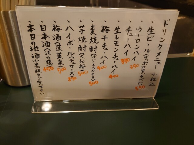 厨房は大将、ホールは男性スタッフ、厨房補佐にも若い男性が対応していました。