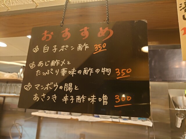 そして、本日のおすすめから気になっていた マンボウの腸とあさつきの辛子酢味噌をお願いしました。