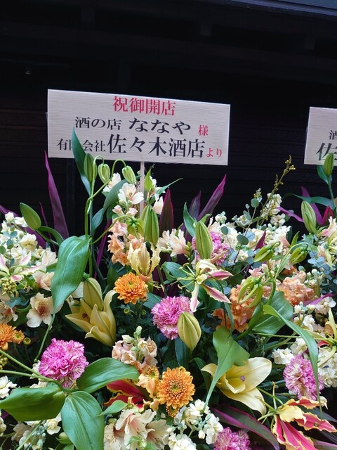 お祝いのお花を見ると、見慣れたお店の文字があります。