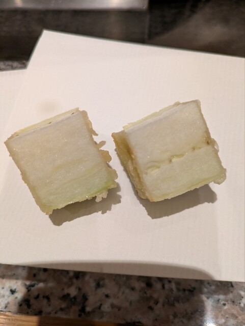 夜伺った時は、素晴らしい天ぷらが更に増え(ウニの大葉包みは涙もの、追加したイチジクの天ぷらも万歳!)、日本酒も美味しく、初めての方は天バラのご飯がおすすめですと言われその通りにして大正解。更にたまたま貸切状態だったので、大将と女将さん(奥様ではない)と沢山おしゃべできて楽しかった〜。