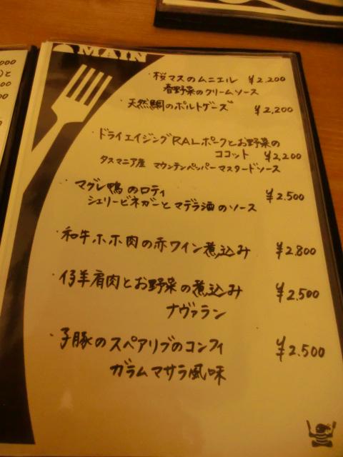 こちらは、メイン料理のメニュー