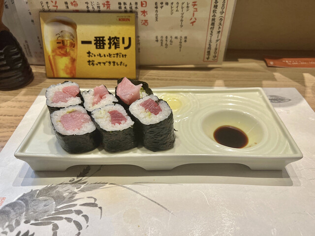そして、のどぐろの塩焼き、海老の天ぷら、〆に中トロの鉄火巻きです。のどくろは脂のノリが良いし、海老の天ぷらは頭までパリパリ食わせてくれる。トドメの鉄火巻きはボリューミーだし、何より旨い!