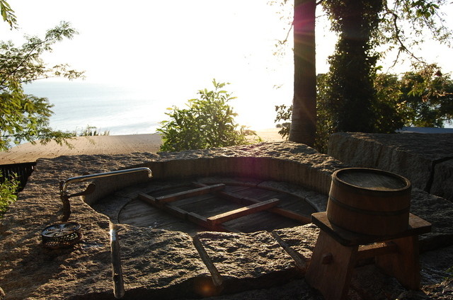 外の五右衛門風呂に入ったり、