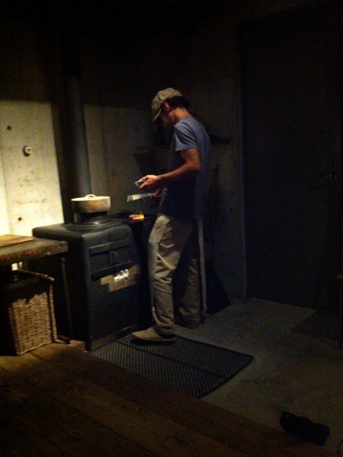釜戸で炊いたご飯で焼きおにぎり作成中♪
