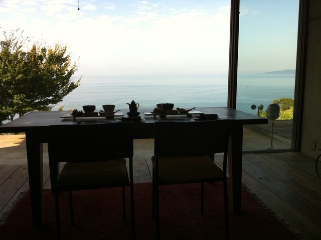 夜は暗くて見えないけど、朝は海を見渡しながらの朝食♪
