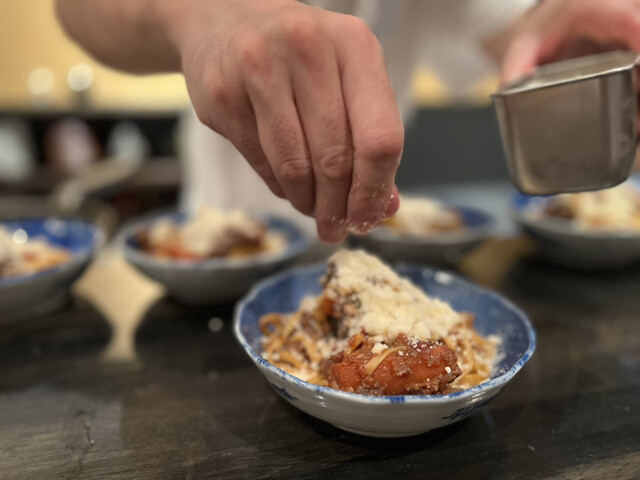 パスタは目の前で製麺してくれて、その工程も楽しめます。