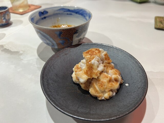 北海道産の焼き白子はピリ辛のタレで・・・