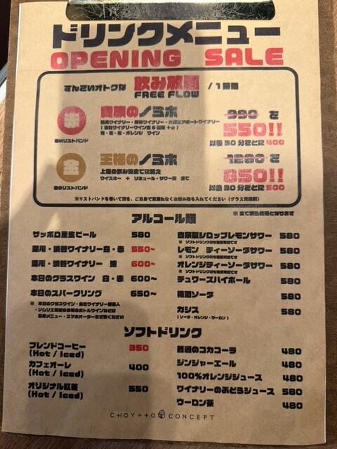 もう一つ上の,王様のノミホ:1,280円では,ウィスキー,リキュール,サワー等も含まれています.