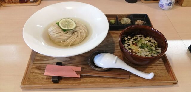 2回目の昆布水つけ麺。前回2年前は「塩」を食べたので今回は「醤油」にしました。