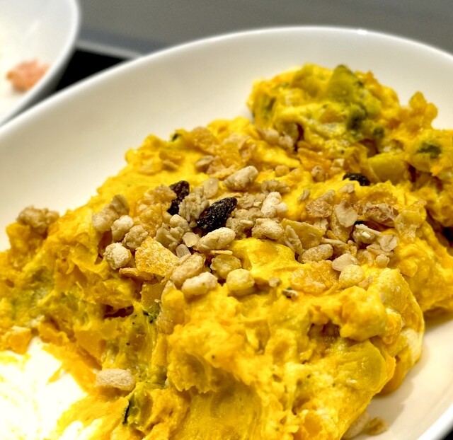 グラスに入ったちらし寿司は、綺麗な盛り付けでインスタ映え!成田のラウンジでは、カリフォルニアもどきのような、『?』な寿司を出していましたが、羽田では今時の需要を捕まえて一気にレベルアップ。ダイス状のまぐろ、サーモン、卵焼き、煮凝り風ジュレにとびこが乗っており、うまくと透明感演出!このグラスチラシ、レストランで出てきてもおかしくないクオリティーです。おそらくシーズンごとにトッピングを変えて変化させても面白いです。