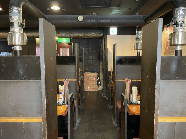 ロケーションは東急目黒線武蔵小山駅をパルム商店街を進みます。2階にコメダ珈琲が見えたら右折です。お店の入り口は、コメダ珈琲の右隣です。外観はかなり怪しい感じがします。店内は以前の焼肉安安をそのまま居抜きで使用しているようで、高い衝立で仕切られており、まるで個室のようで、落ち着きます。咳も大きいのでかなりゆったりしているのがいいですね。
