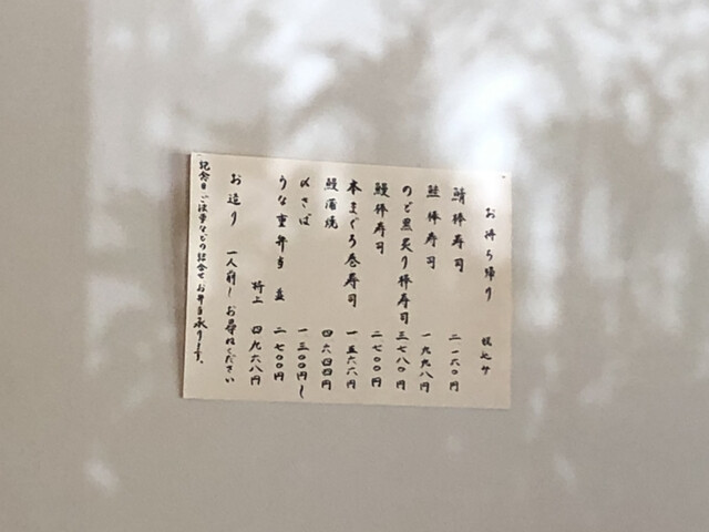 どうやら周りは全て予約のお客さんのようです。そんな中、私は「ほそ川膳」に鮭寿司をチョイス、女性陣は「鯖寿司膳」でお互いにシェアし合いながら何とも言えいない具合に仕上げられた2種類の棒寿司を堪能しました。