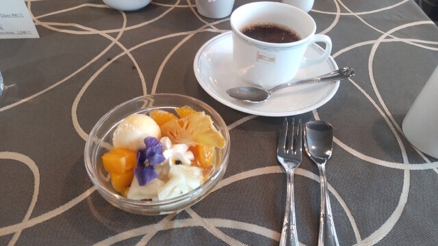 今回は沖縄でしたが、、、三食夜食で沖縄に因んだ食材はほぼ全て味わうことができ感激でした。フレンチ、和食へ巧みに組み込まれ、毎日が結婚式のような食事で素晴らしい時間が持てました。角煮、もずく、ソデイカ、ミミガー、ゴーヤ、ジーマーミ豆腐、紅芋、島らっきょう、マンゴー、SPAM、オリオンビール等々。ダイニングスタッフのサーブする方はほとんどがフィリピンの方でしたが明るく丁寧な接客スキルに隙無く、チーフ目も行き届いており、配席も鮮やかで感心。同じ時間に百人を越える船客が気持ち良く利用できるチームワークの良さに感心しました。ディナータイムではお客様の皆さんも、服装雰囲気にそれとなく気を使っておられることが感じられる会場でした。