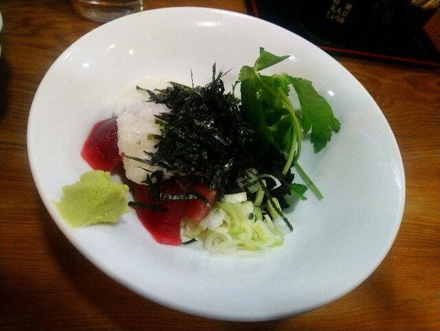 山かけは、ちょっと寂しい見栄えだが、三つ葉がアクセントで良しとしようか。。
