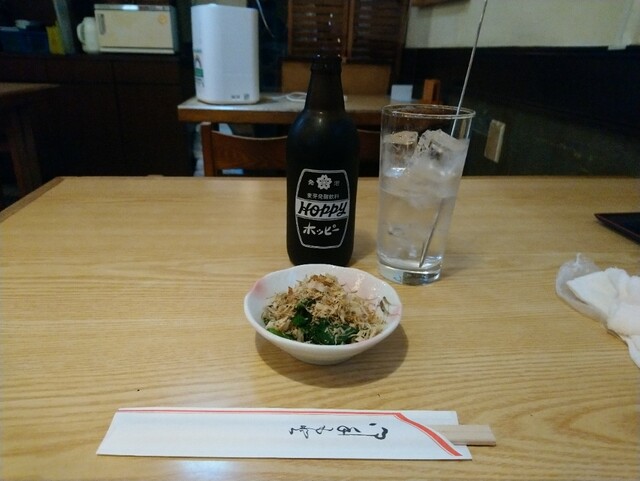 ホッピー黒 480円、のちに追加焼酎 250円[すべて税込]。