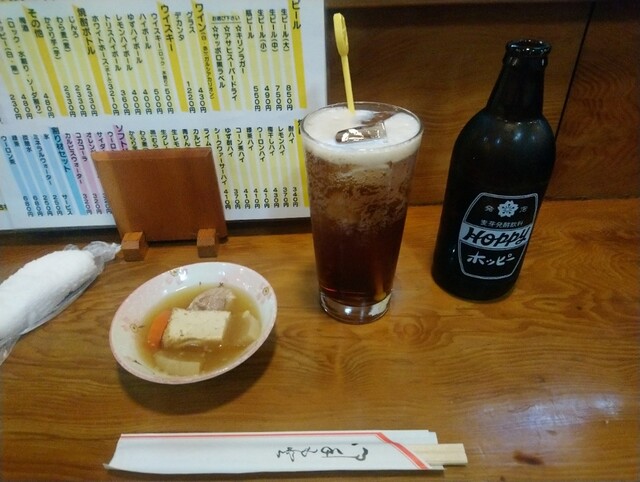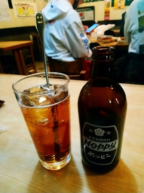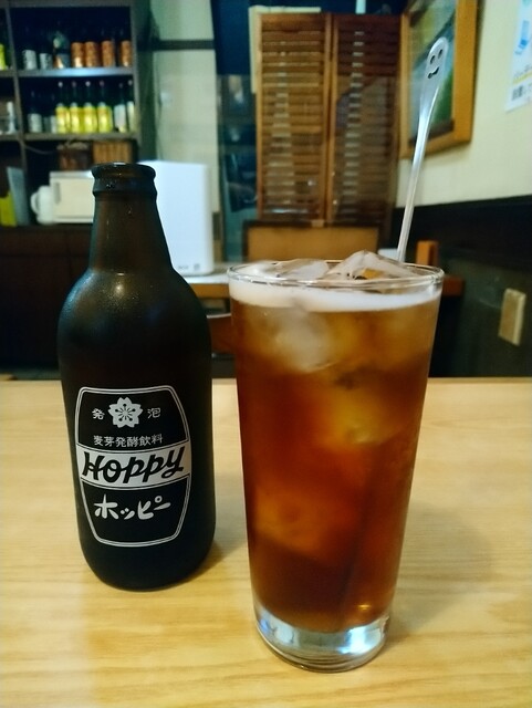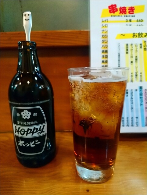 ホッピー黒 440円+追加焼酎(中) 210円[すべて税別]。