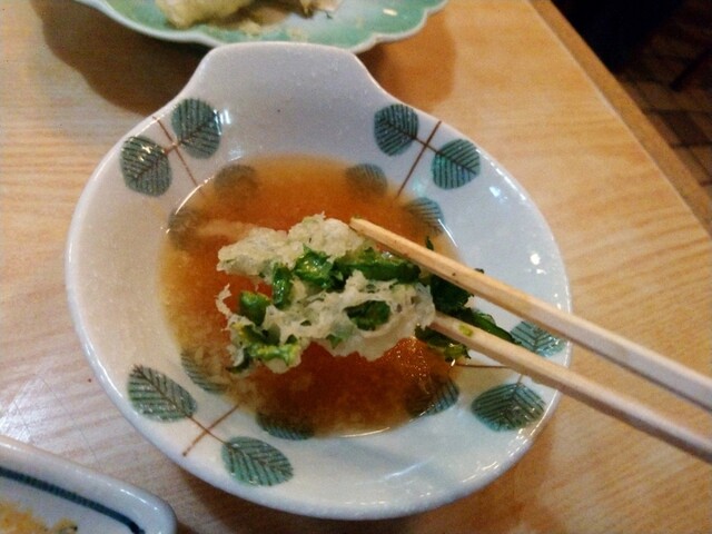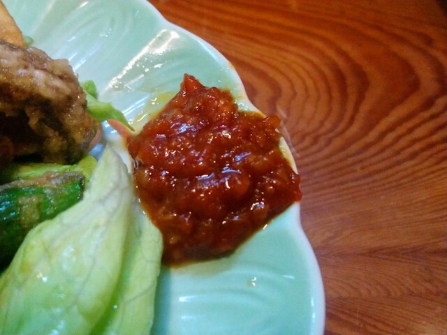 海苔に巻かれたつみれ肉の素揚げが、これまた美味しかった。