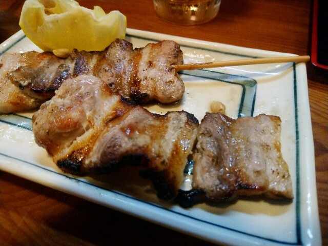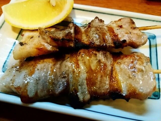 あらかじめ醤油ベースのタレがかけられ、カットレモンが添えられる。