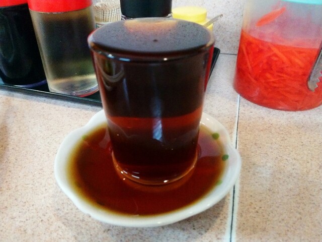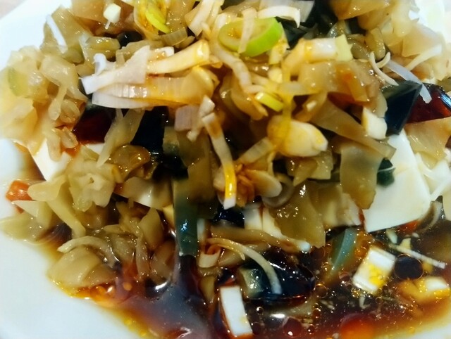 • おろしニンニク、お酢と辣油