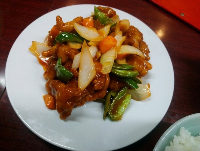 酢豚 1100円とライス 250円。