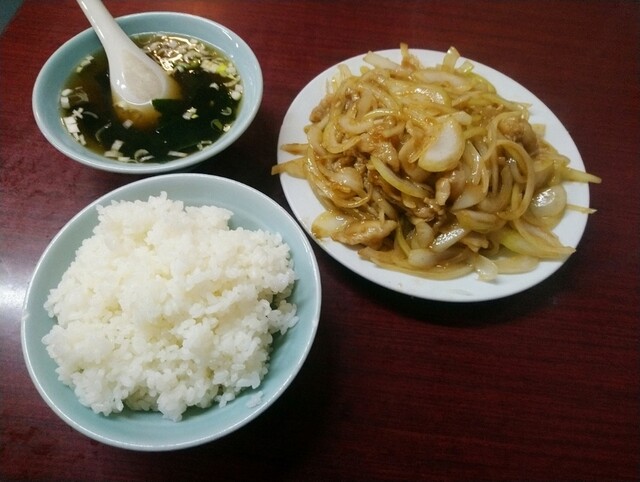 やや高めの一品料理に、大盛りデフォルトな白飯。