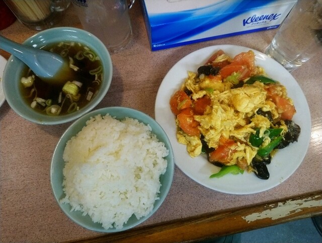 トマトと玉子炒め 950円、ライス 250円。