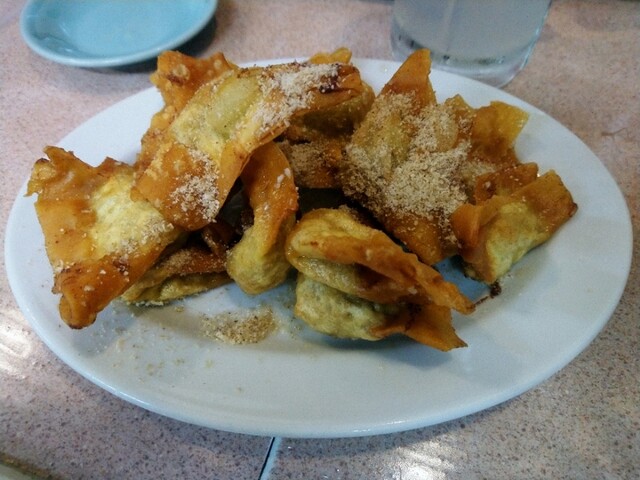 自家製であろう、しっかりと肉が詰まった揚げワンタン。
