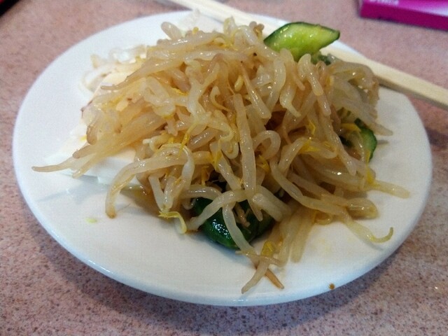 もやし、キュウリに豆腐と、気前イイ山盛りのお通しが。