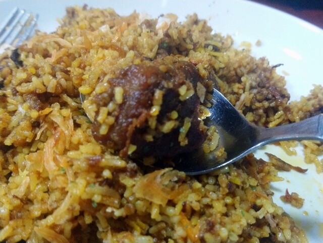 混合米に、あとから骨無しマトン肉を加えて温め(炒め)直したモノは、旧店のそれにほぼ近い。