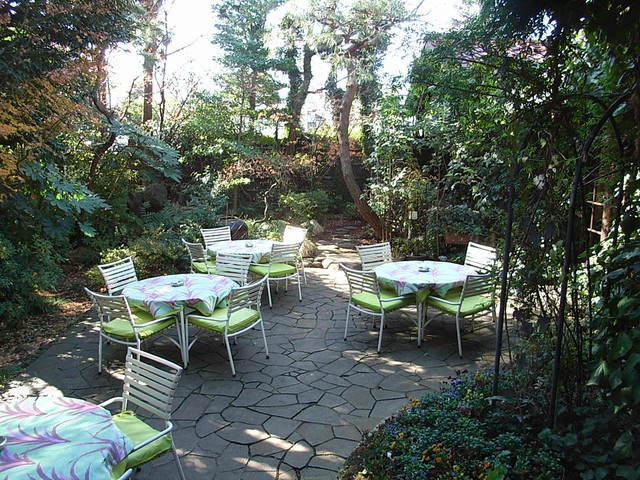 こちらは、オープンして30年。皇太子ご夫妻のご利用が、有名で、館内にもお写真が、飾られていた。私の席の「ガーデンアネックス」は、以前、藤棚だったところに20年以上前に増築したお部屋だそうだ。