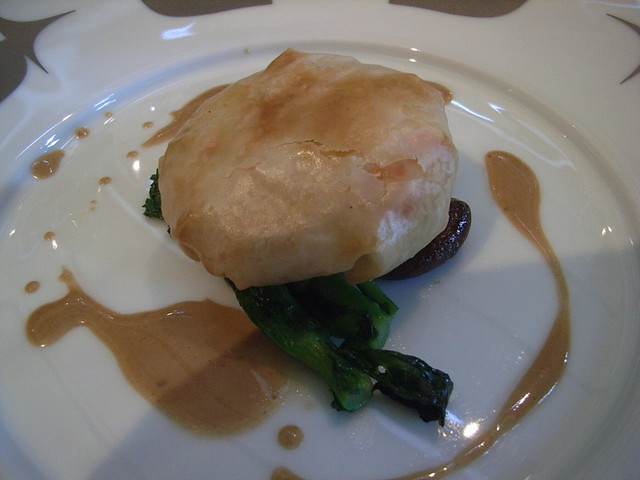前菜の後、出てきたのが、サプライズのお料理。「豆腐のラヴィオリ」というのだろうか。味オンチの私としては、豆腐より、チーズの味を強く感じた。