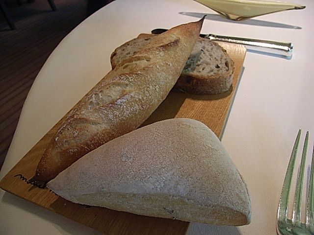 2つ目のパンは、「川海苔を練りこんだパン」。こちらのシェフ、ティエリー・ヴォワザン氏は、最初とお食事が終わる頃の2回、ご挨拶にいらした。まめに各テーブルをご挨拶に回っていらした。こういったサービスも嬉しい。