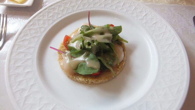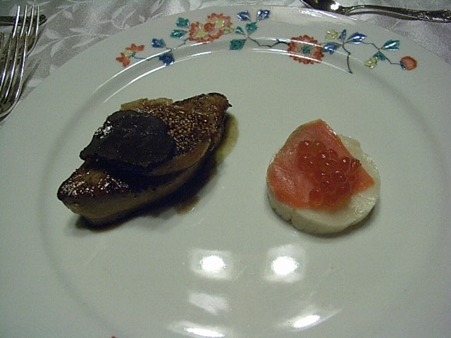 オードブル2種は、フォアグラとホタテ。美味しい。フォアグラの濃厚な味が、素敵だ。