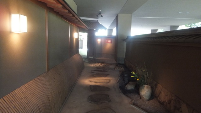 口代りは「まながつお西京菜畑焼、かます焼霜ずし、はじかみ、ペコ玉合鴨重ね山椒焼、丸十レモン煮、柚子胡椒味噌和え」、炊合せが「丸茄子揚荷胡麻あん掛け、海老黄身煮、いんげん、木の芽」こちらが非常に美味しかった。丸茄子揚荷が口に入れると蕩ける。そして御飯が「新生姜ご飯、軸三ツ葉散し」、止め椀が赤出し仕立て、なめこ、豆腐、三ツ葉」、香の物が「野沢菜、胡瓜印篭、赤蕪」。ご飯はお替り自由だったが、年配の方が多いせいか誰もお替りをしなかった。私も、腹八分を心掛けているので、これで満足。美味しかった。最後に水菓子「パイナップル、ゆめほっぺ、あまおう」と甘味「お甘、お薄」が一緒に出てきた。果物も私が日頃いただいているものとは一味違った。これで終了。約2時間。堪能した。帰る時に2階にある鎌倉時代の庄屋の館を移築したという「田舎家」を拝見。中庭ともどもビルの中に入ったとはいえ往時の料亭の良さを十分味あわせていただいた。
