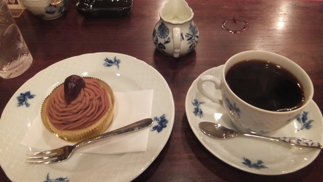 先日、神保町へ新しい眼鏡を受け取りに行った。その後、「こんごう庵」で新潟へぎそばランチ。その後、靖国通りに面したビルの地下1階にある、こちらでデザートとコーヒーをいただいた。路地を入り階段を降りて地下のお店に入る。店内は、お昼過ぎなので、80%位の入り。本当は、テーブル席で、いただきたかったが1人だったので案内されたカウンター席でケーキセットをいただいた。コーヒーは、壹眞ブレンドを選択したので少し割高で1200円だったか。ケーキは、私の定番のモンブラン。カウンター席正面に様々なカップが飾られている。レトロでコーヒーも美味しい貴重なお店。