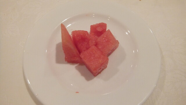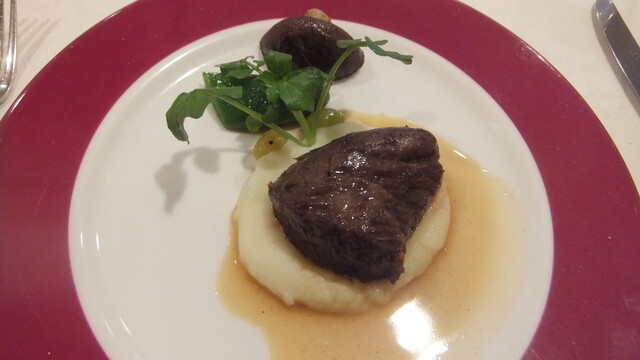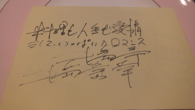 四ツ谷で開店して26年の老舗フレンチ「北島亭」。現在は北島料理長と30歳若い大石副料理長の2人で厨房を切り盛りしている。今回はコース料理なのである程度時間が取れるとのことで大石氏が積極的にいろいろな説明をして下さった。通常のアラカルト料理の場合は、かなり忙しいのでお客様の相手もなかなか出来ないそうだ。経費節減のためお店のパンフレットも無しと大石氏の名刺を皆いただいた。本日のメニュー表も手作り感たっぷりで北島氏のサイン入り。パンも自家製で外側はこんがり中は柔らかいとのお話通りで、なかなか美味しい。2皿目の前菜は「北海道産真鱈の白子のムニエル、トマトソース添え」。これも美味しかった。白子が量的にもたっぷり。大石氏曰くお寿司屋さんだったら軍艦巻きで何貫か作れる量の新鮮な白子に満足。魚料理は「山口萩産甘ダイのクミン付き焼き軽いブールブランソース」。大きめの甘ダイは萩産が一番だとか。肉料理は「三重産A-5伊賀牛のイチボ肉のローストビーフ」。お肉が柔らかく付け合わせとの相性も良い。フレンチの肉料理は美味しいと思ったことはあまりないが、こちらの肉料理は美味しかった。こちらのお料理は、あくまでも素材の良さを生かすようにシンプルに造りお皿の上に食べられない飾りのような物は載せない。あまりシンプルすぎるとフレンチでは無くなってしまうがソースなども最低限の物に抑えているとのお話。デザート1品目は「島根産西瓜」。北島亭の料理はボリュームたっぷりなので、ここで胃をリフレッシュする為に、時期外れだけれども甘さたっぷりなので、あえて出しているとのお話通り非常に甘い。デザート2品目は4種類のデザートから1品選択。私は「苺のタルト」。見た目も可愛らしく味も素敵だ。他に、クリームブリュレ、ブランマンジェ、モンブランの3品がありアトランダムに出された。飲み物は、紅茶、コーヒー、カプチーノ、ハーブティーから選択。私はハーブティーをいただいた。